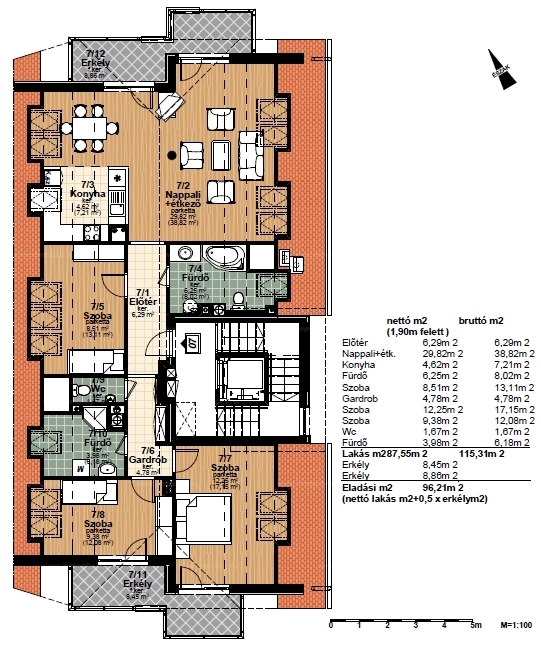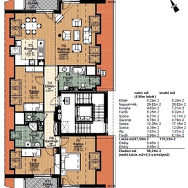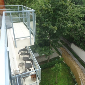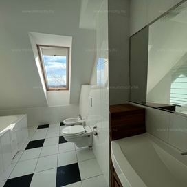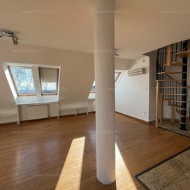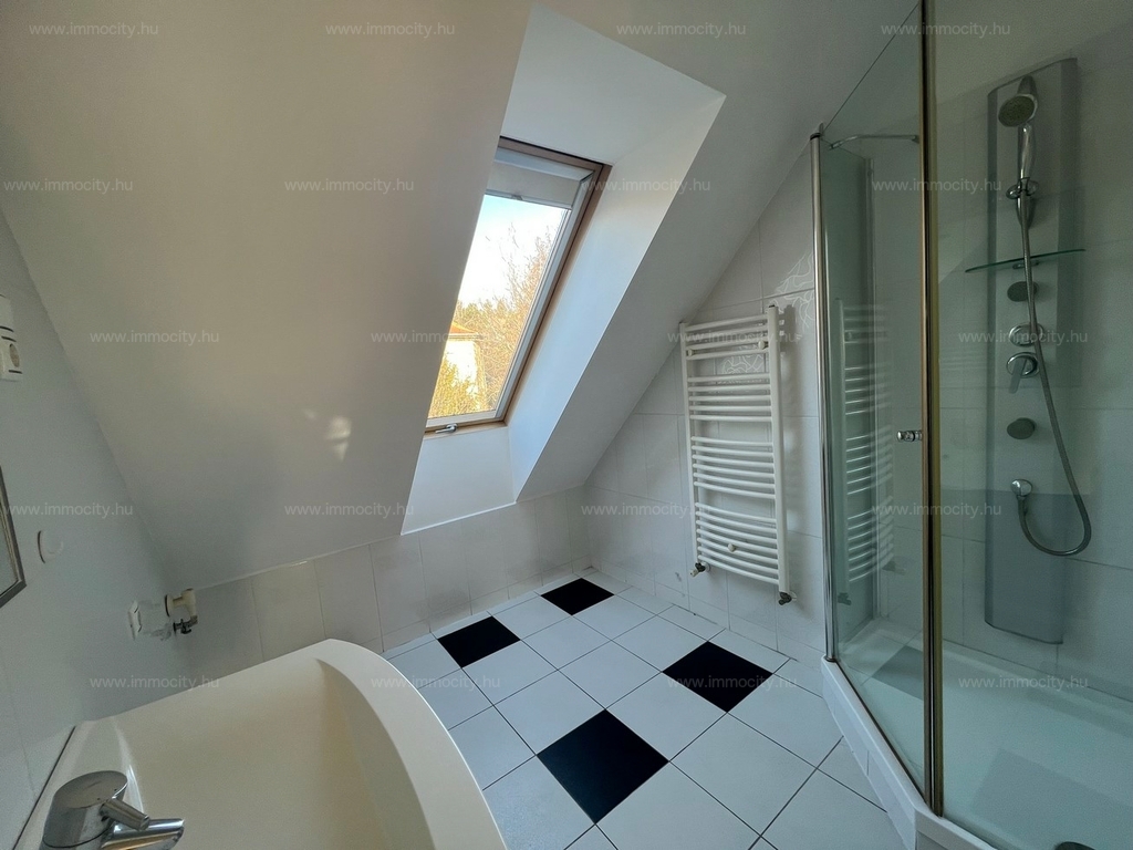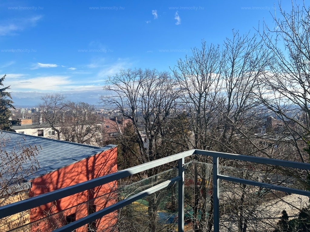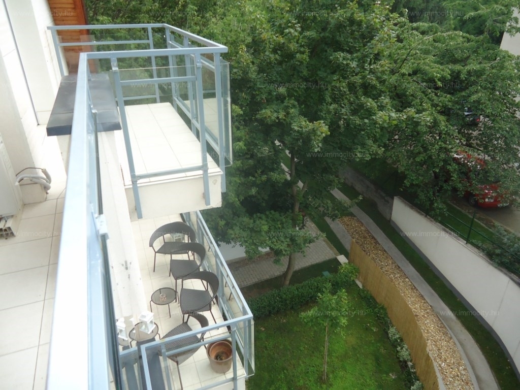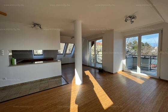 2012-ben épült modern, 7 lakásos, liftes társasház teljes legfelső emeletét elfoglaló lakás 2 terasszal bérelhető. Az eredetileg is szép, tágas lakást a tetőtérben 2 szobával és egy harmadik kis fürdőszobával bővítették ki. (Ez vendégszobának, irodának, gyermek birodalomnak egyaránt ideális). Az egész lakásban remekül hasznosíthatóak az alacsonyabb falsík-területek is. A két erkély 8 és 9 m2-esek. A lakás szép, világos, körbe süti a nap, a két fürdőszoba is ablakos.