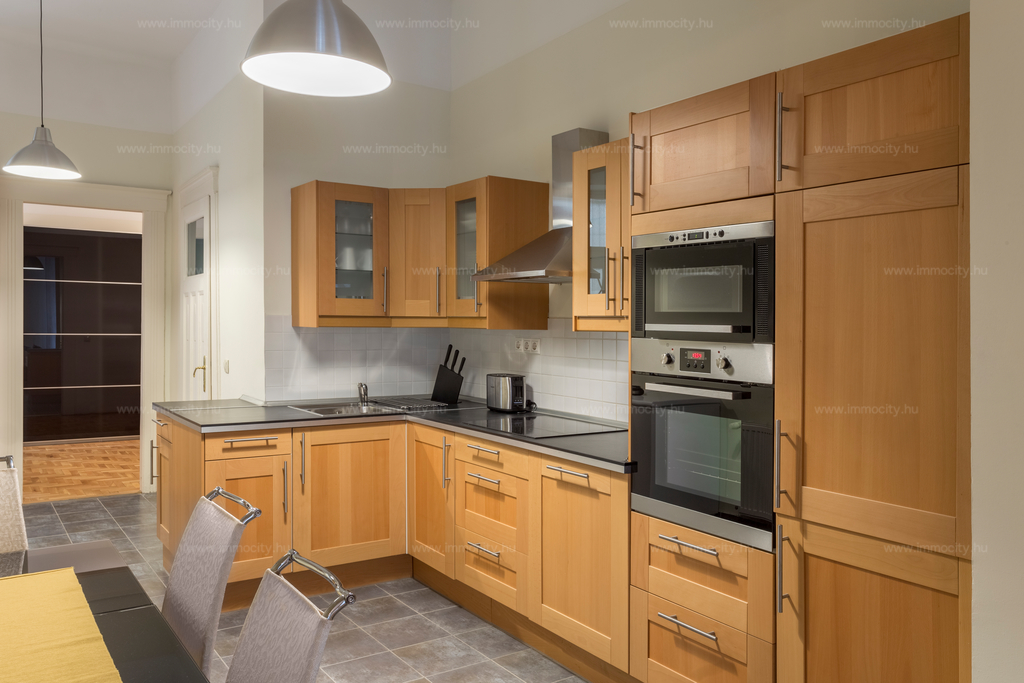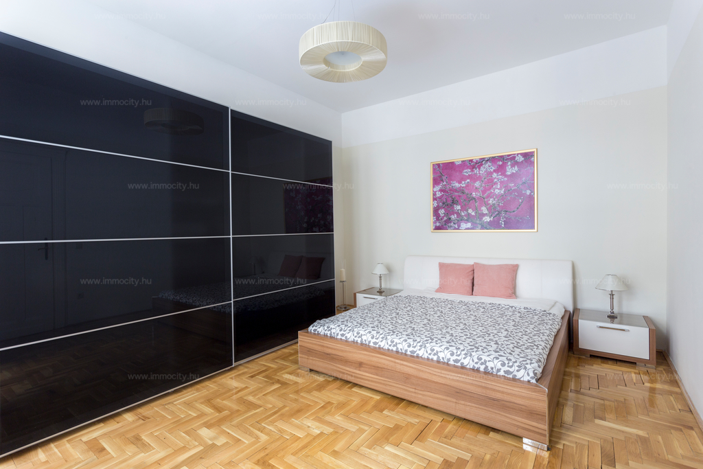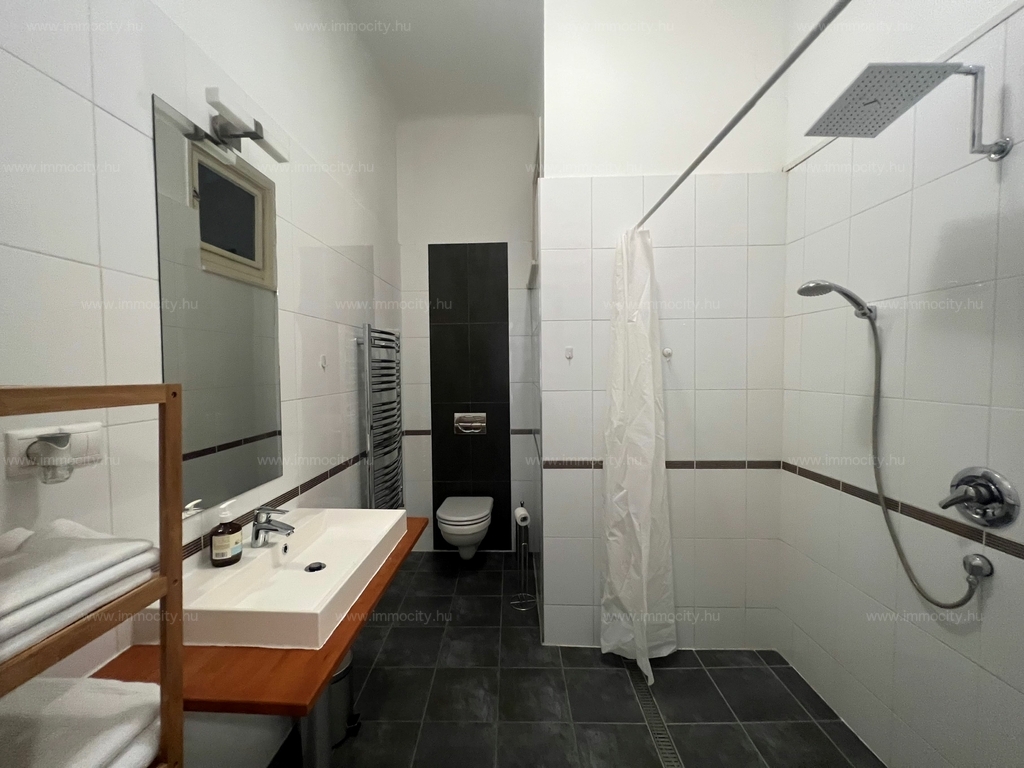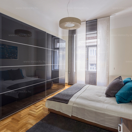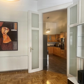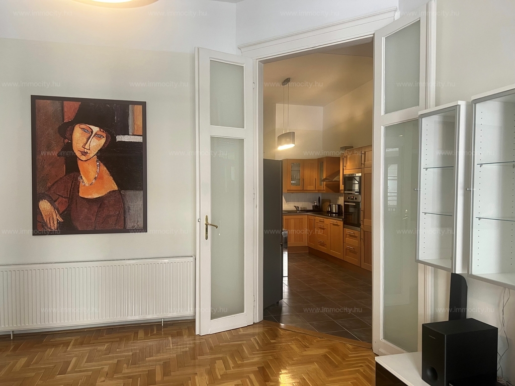 A lakás előteréből nyílik a konyha - étkező, valamint az egyik hálószoba, a hozzátartozó zuhanyzós fürdőszobával. A konyhából nyílik a csendes utcára néző nappali, melynek erkélye is van, valamint a másik hálószoba, a hozzátartozó szintén zuhanyzós fürdőszobával.