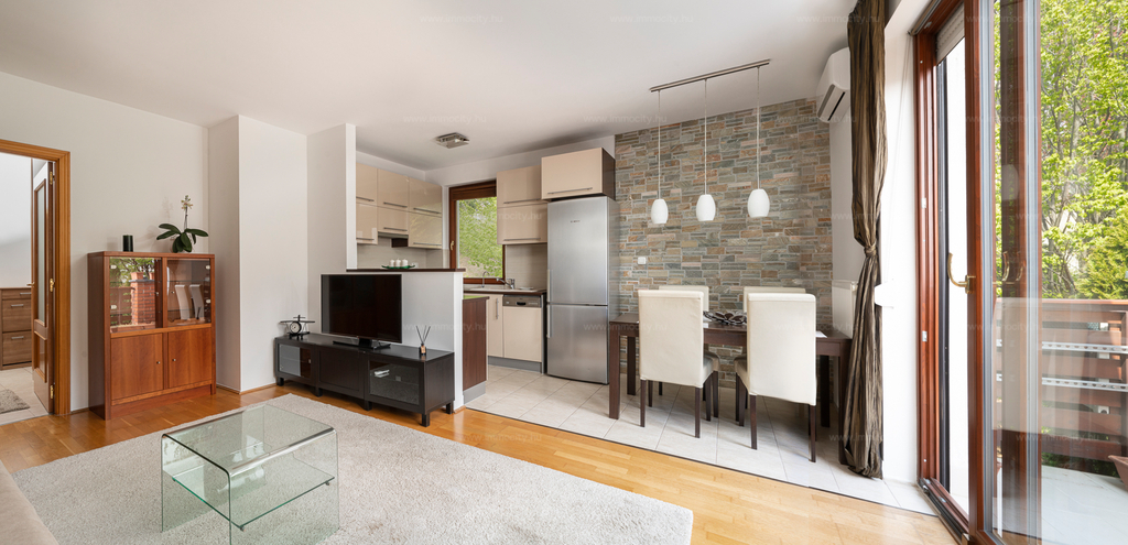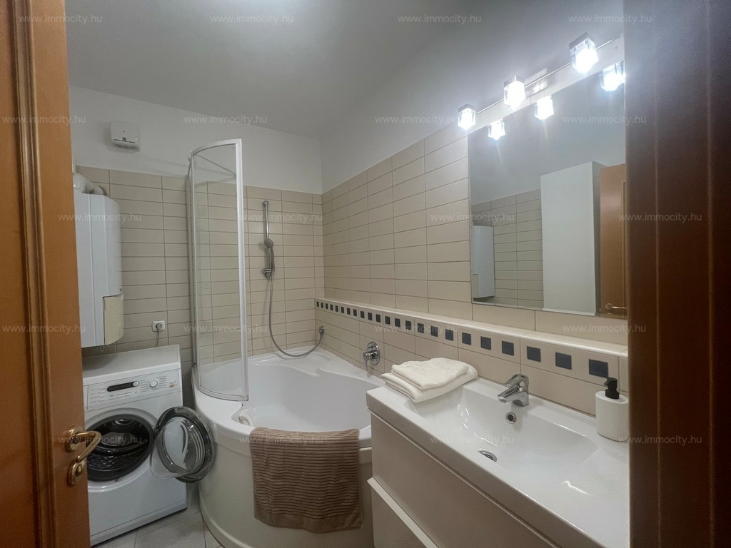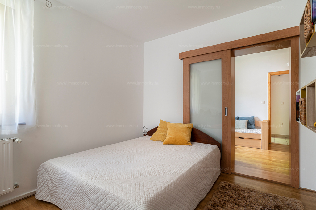A lakáshoz tartozik egy tároló és teremgarázs beálló is.
