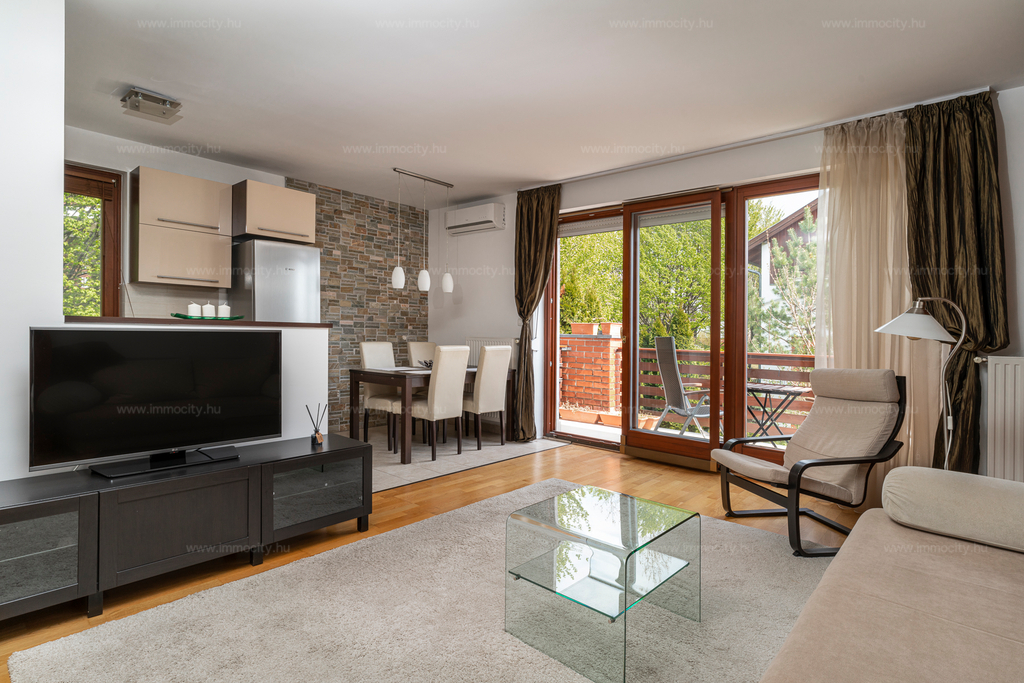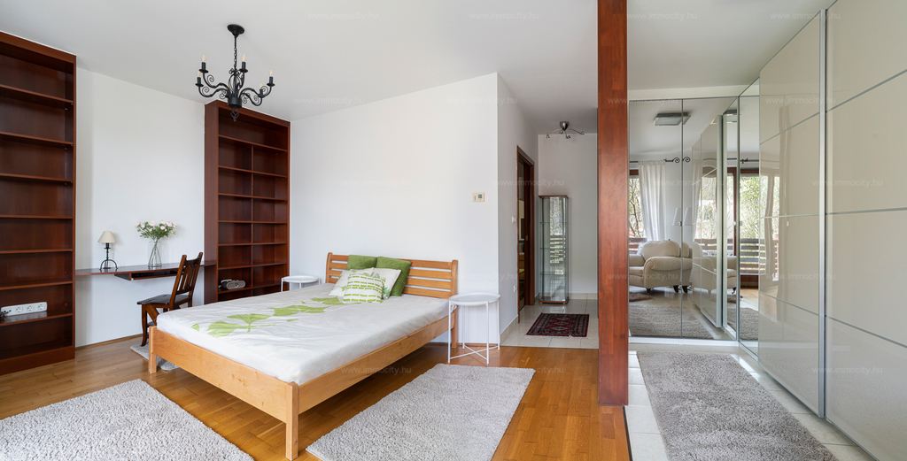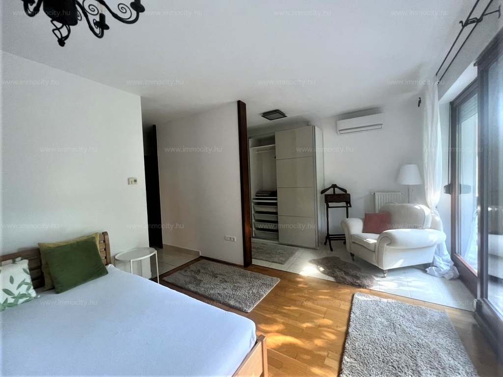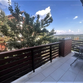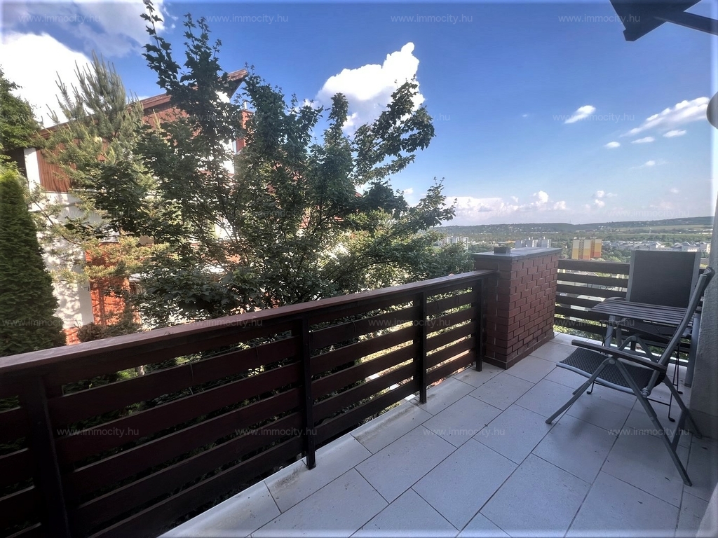 Budaörs legszebb és legkeresettebb részén a bíróság fölötti hegyoldalban, hosszú távra kiadó körpanorámás 3+2 fél szobás, két fürdő, két WC, minden irányban teraszos (három 10 m2-es), berendezett, örökpanorámás lakás.