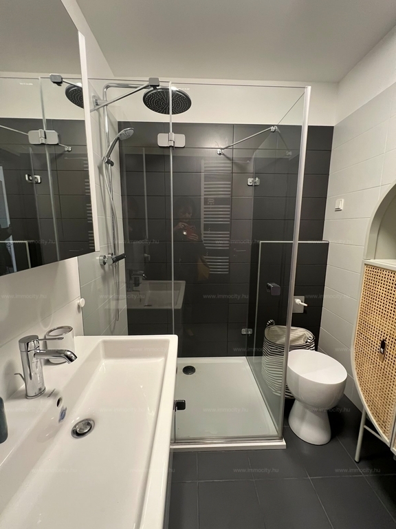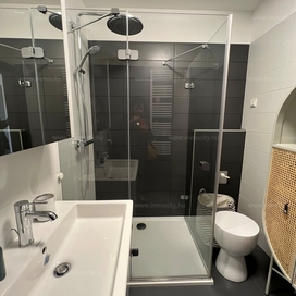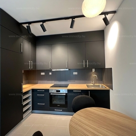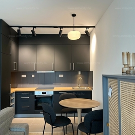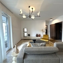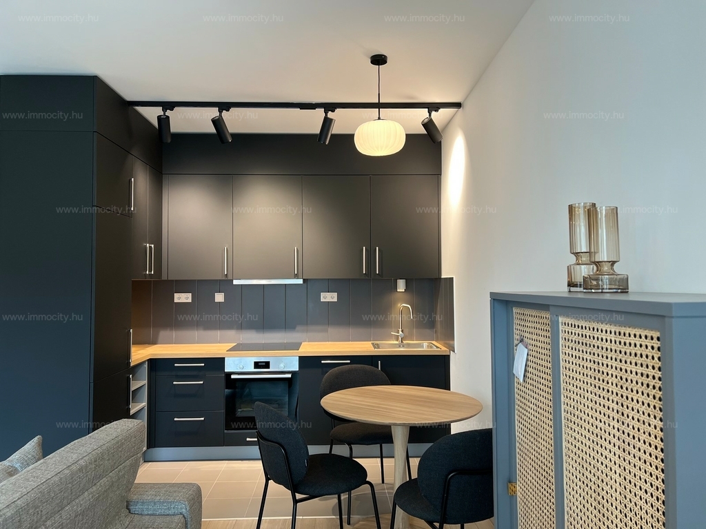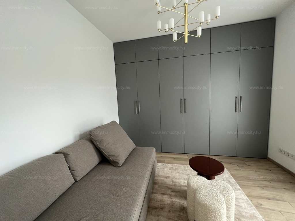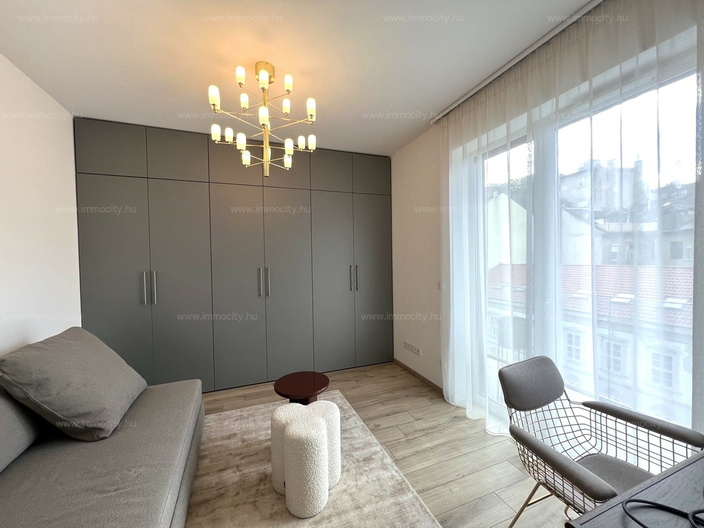 Az exkluzív, új bútorokkal berendezett lakásban mennyezeti hűtés-fűtés és padlófűtés van kiépítve.