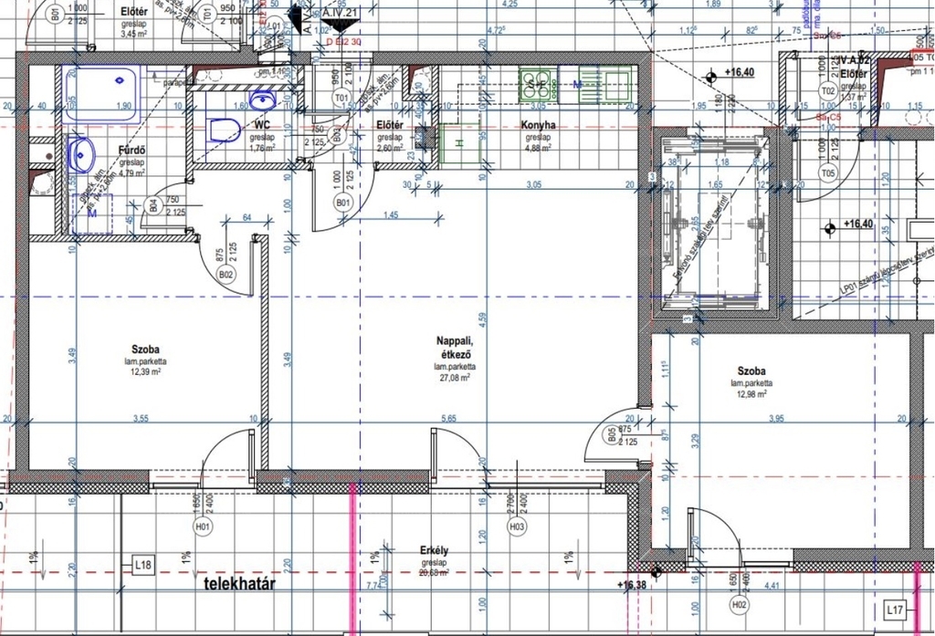 A nappali+ 2 hálós lakáshoz kényelmes, mindhárom szobából megközelíthető, 20,68 m2-es erkély tartozik.