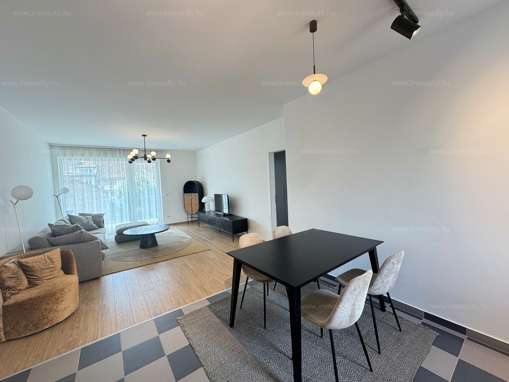 Az exkluzív, új bútorokkal berendezett lakásban a legkorszerűbb mennyezeti hűtés-fűtés és padlófűtés van kiépítve.