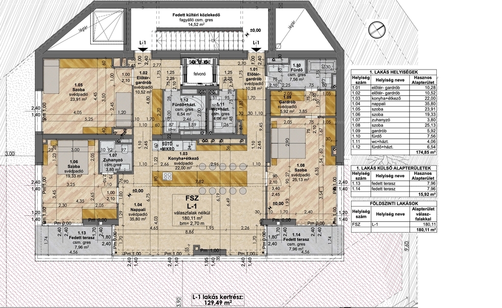 Egy teljes szint 176 m2. M2 ár 3,1 M Ft-tól.