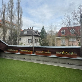 A négyzetes, több, mint 10 m2-es napos terasz védett, privát kiegészítője a szép otthonnak.