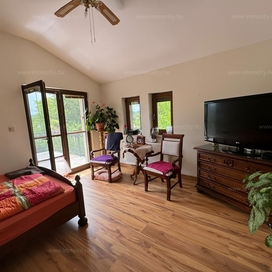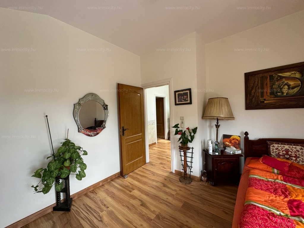 Két hálószoba, két fürdőszoba mellett a pince szinten is kialakításra került a szoba-fürdőszobás kis lakrész, mellette több, összesen kb. 80 m2 tároló helyiség található, ami számos egyéb funkcióra hasznosítható.