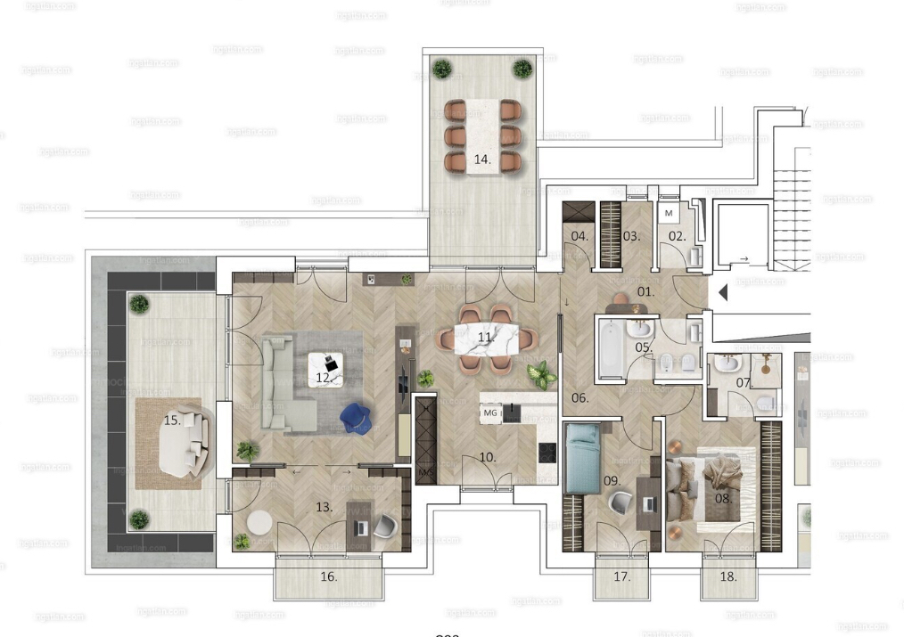 •Terasztetők és erkélyek egy szintben a lakás padlóvonalával.
