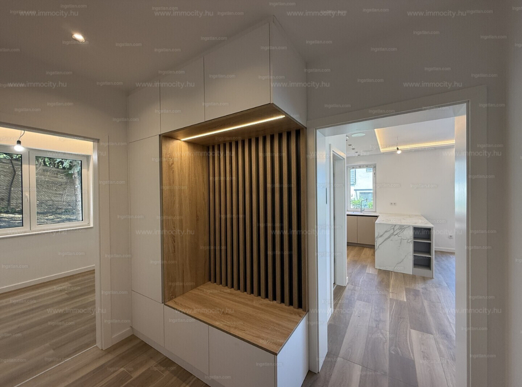 A vételárban a képeken látható beépített bútorok, konyhagépek, valamint a füvesített, robotfűnyíróval és öntözőrendszerrel telepített kert is benne foglaltatik.