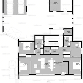 Az A épület földszinti, 5 szobás lakása 121 m2 alapterületű, 39 m2-es terasszal és 220 m2-es kizárólagos használatú kertrésszel rendelkezik.