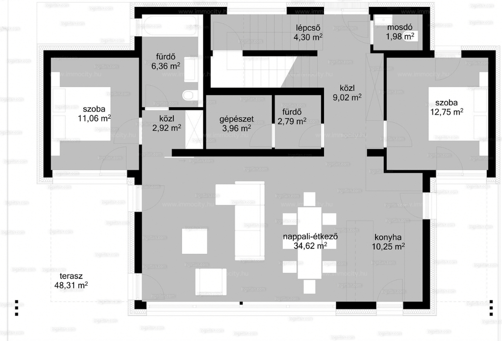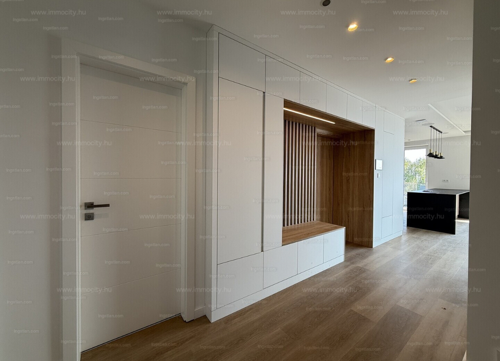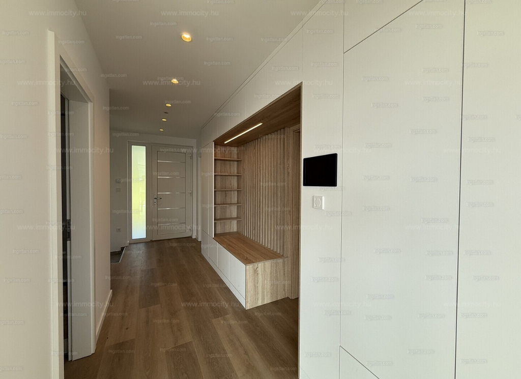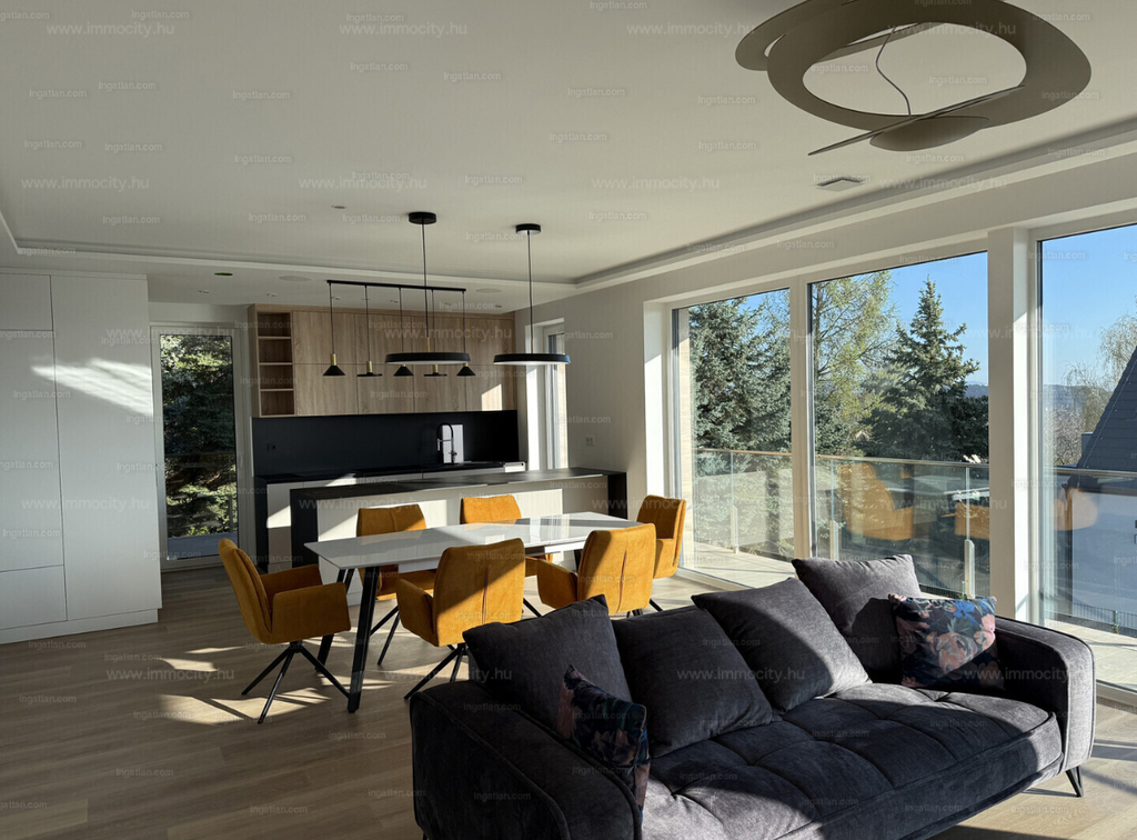 A vételárban a képeken látható beépített bútorok, konyhagépek, valamint a füvesített, robotfűnyíróval és öntözőrendszerrel telepített kert is benne foglaltatik.