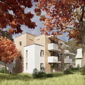 Forgalom-mentes kis utcában épül ez elegáns vonalvezetésű, mindössze 3 lakásos társasház.