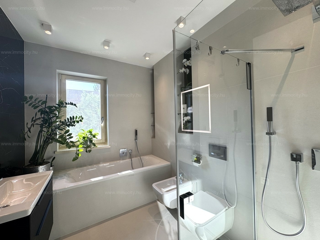 Orbánhegy egyik legszebb részén, egy 2.246 m2-es, DNY-i tájolású, panorámás telken 2023 októberében elkészült 5 lakásos társasház földszinti, 4 szobás, 2 fürdőszobás, 160 m2-es lakása megvásárolható. A lakáshoz egy 46 m2-es terasz és 275 m2 alapterületű kizárólagos használatú kertrész is tartozik. Az ingatlan a Gellért-hegyre és a Sas-hegyre is panorámás.