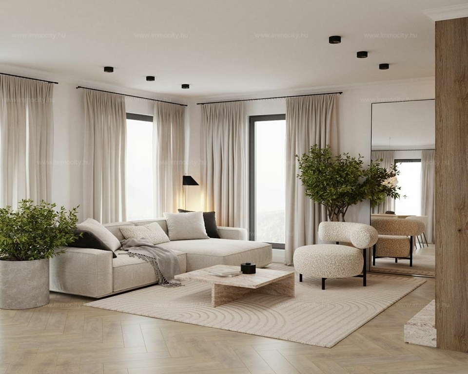 Tágas, nagyszerű elrendezésű, világos lakások erkélyekkel. A földszinti lakásokhoz terasz és kis kertrész tartozik, a legfelső lakások különleges értékét a panorámás, impozáns teraszok adják.