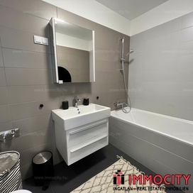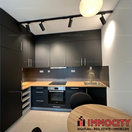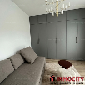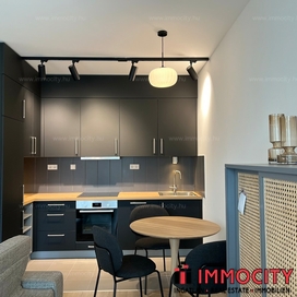 Az exkluzív, új bútorokkal berendezett lakásban mennyezeti hűtés-fűtés és padlófűtés van kiépítve.