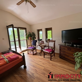 Két hálószoba, két fürdőszoba mellett a pince szinten is kialakításra került a szoba-fürdőszobás kis lakrész, mellette több, összesen kb. 80 m2 tároló helyiség található, ami számos egyéb funkcióra hasznosítható.