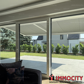 A vételárban a képeken látható beépített bútorok, konyhagépek, valamint a füvesített, robotfűnyíróval és öntözőrendszerrel telepített kert is benne foglaltatik.