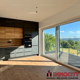 Ez az első emeleti, 81 m²-es lakás nemcsak kényelmet, hanem lélegzetelállító kilátást is kínál. A 10 m²-es saját teraszról páratlan panoráma nyílik a környező zöldövezetre – ideális reggeli kávézásokhoz vagy egy nyugodt esti borozáshoz.