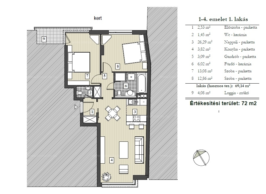 Modern bel-budai társasház gyönyörű, 69,14 m2-es, 3 szobás lakása kiadó!
