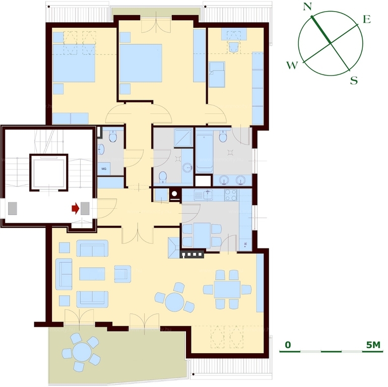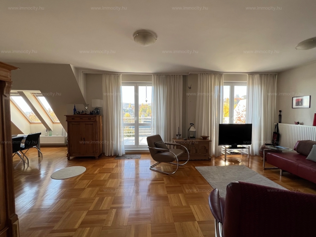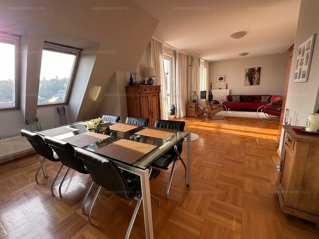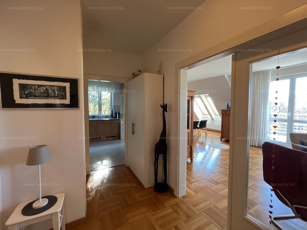 Az ingatlan világos, csendes, a környék kiváló infrastruktúrával rendelkezik. Az ár egy gépkocsi beálló és egy pince szinti tároló bérleti díját tartalmazza.
