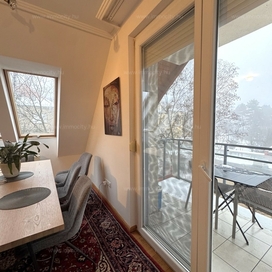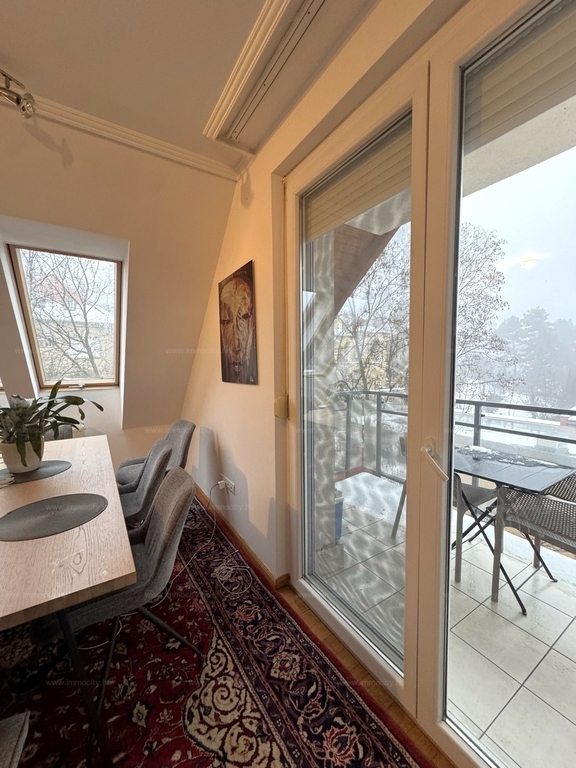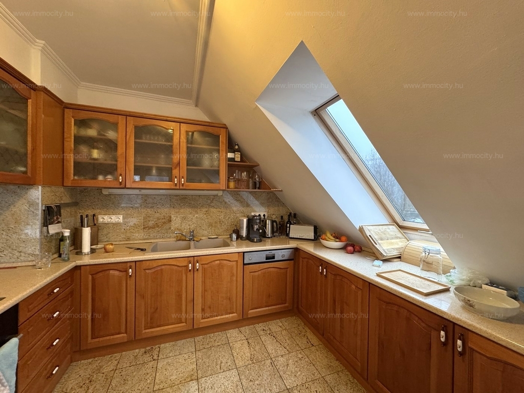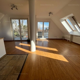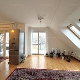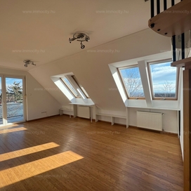 2012-ben épült modern, 7 lakásos, liftes társasház teljes legfelső emeletét elfoglaló lakás 2 terasszal bérelhető. Az eredetileg is szép, tágas lakást a tetőtérben 2 szobával és egy harmadik kis fürdőszobával bővítették ki. (Ez vendégszobának, irodának, gyermek birodalomnak egyaránt ideális). Az egész lakásban remekül hasznosíthatóak az alacsonyabb falsík-területek is. A két erkély 8 és 9 m2-esek. A lakás szép, világos, körbe süti a nap, a két fürdőszoba is ablakos.
