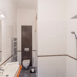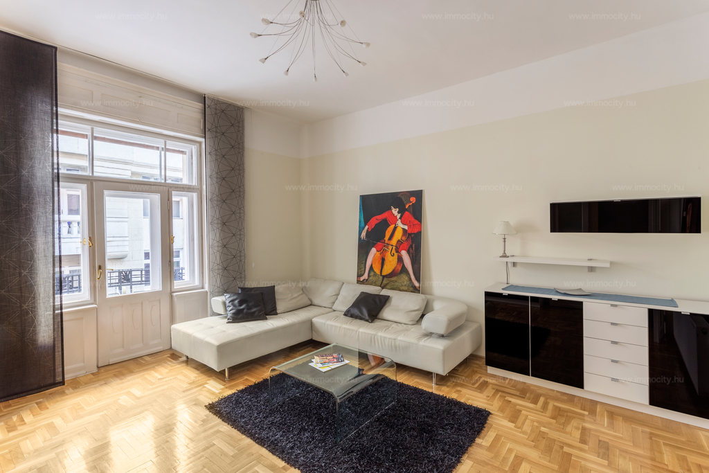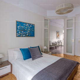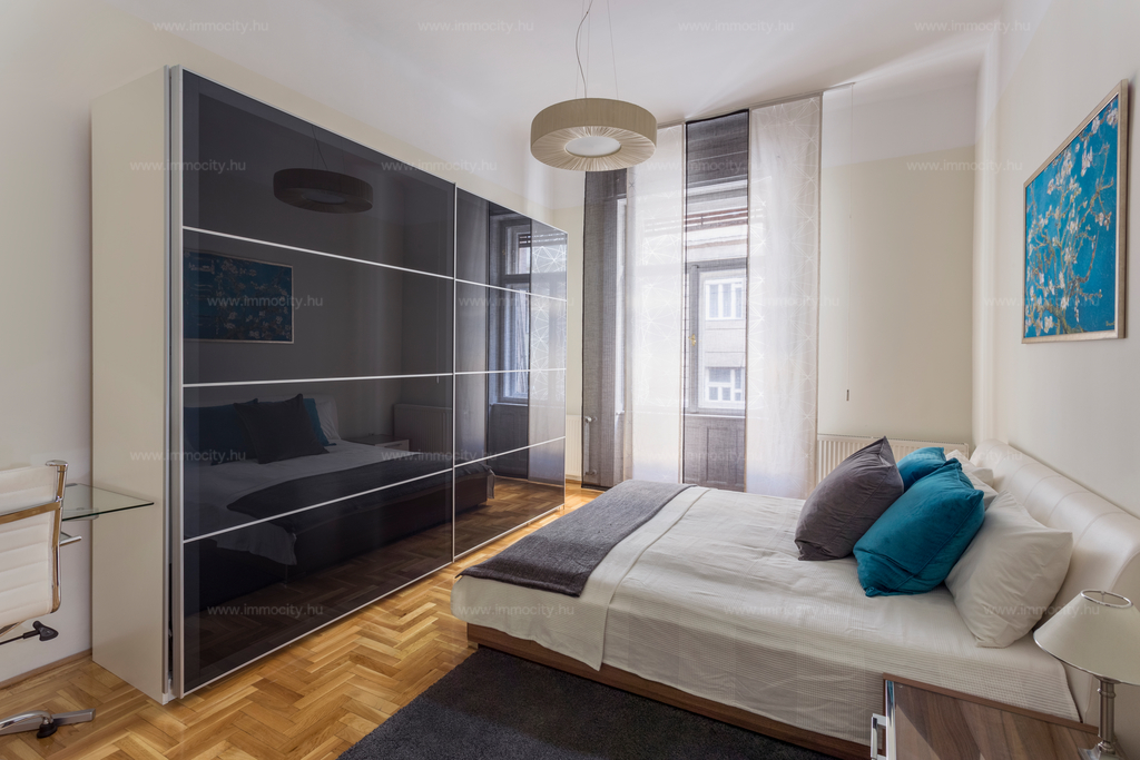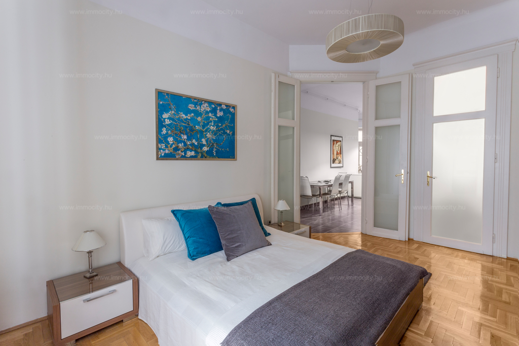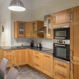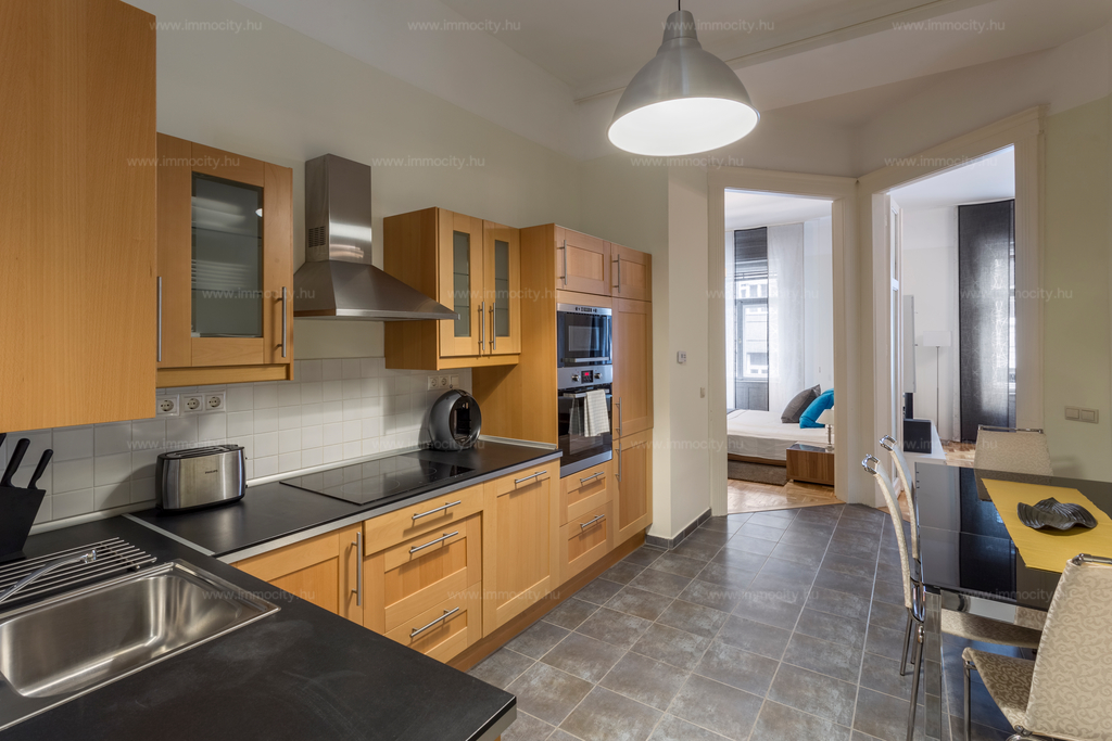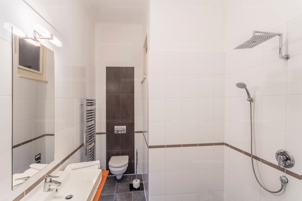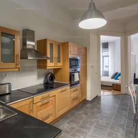 A lakás előteréből nyílik a konyha - étkező, valamint az egyik hálószoba, a hozzátartozó zuhanyzós fürdőszobával. A konyhából nyílik a csendes utcára néző nappali, melynek erkélye is van, valamint a másik hálószoba, a hozzátartozó szintén zuhanyzós fürdőszobával.