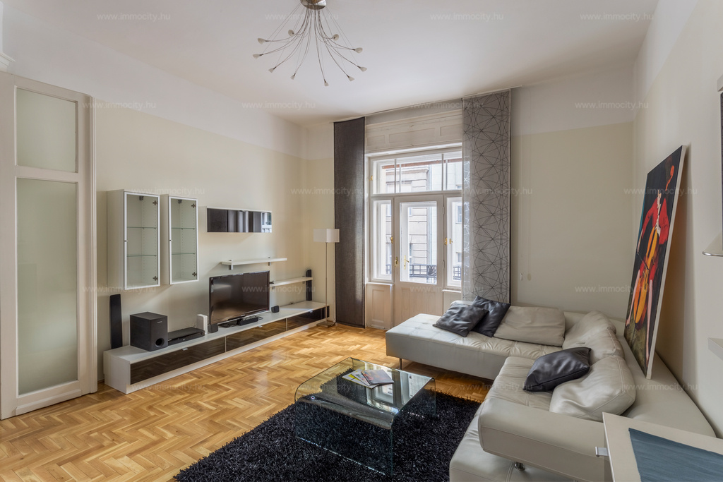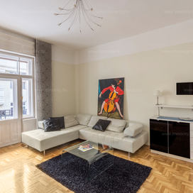 A két hálós, 2 fürdőszobás, elegánsan bútorozott lakás egy rendezett társasház első emeletén található.