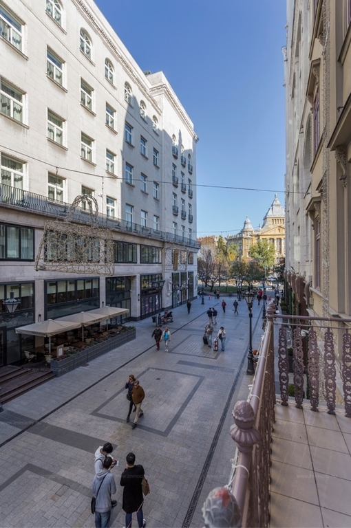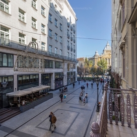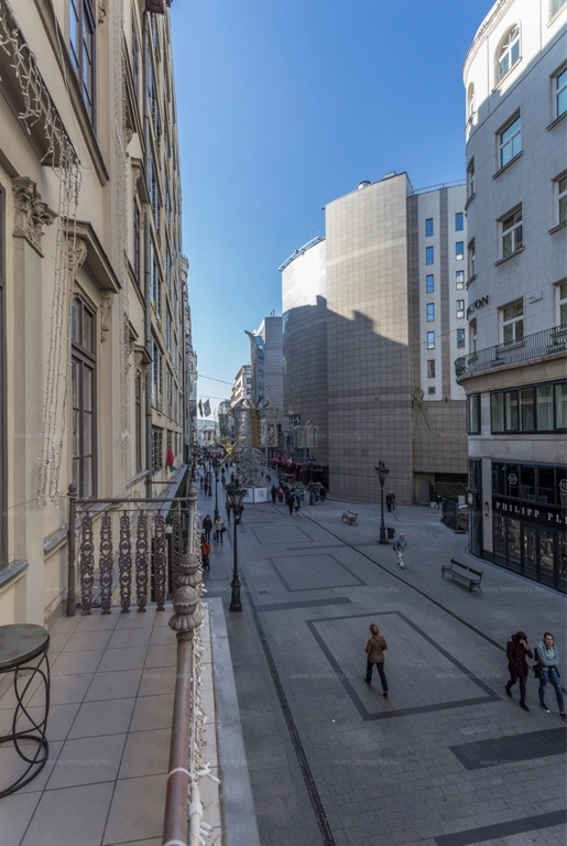 A tágas nappaliból kényelmes erkély nyílik a Deák Ferenc utcára.