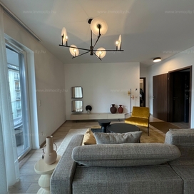 Az exkluzív, új bútorokkal berendezett lakásban mennyezeti hűtés-fűtés és padlófűtés van kiépítve.