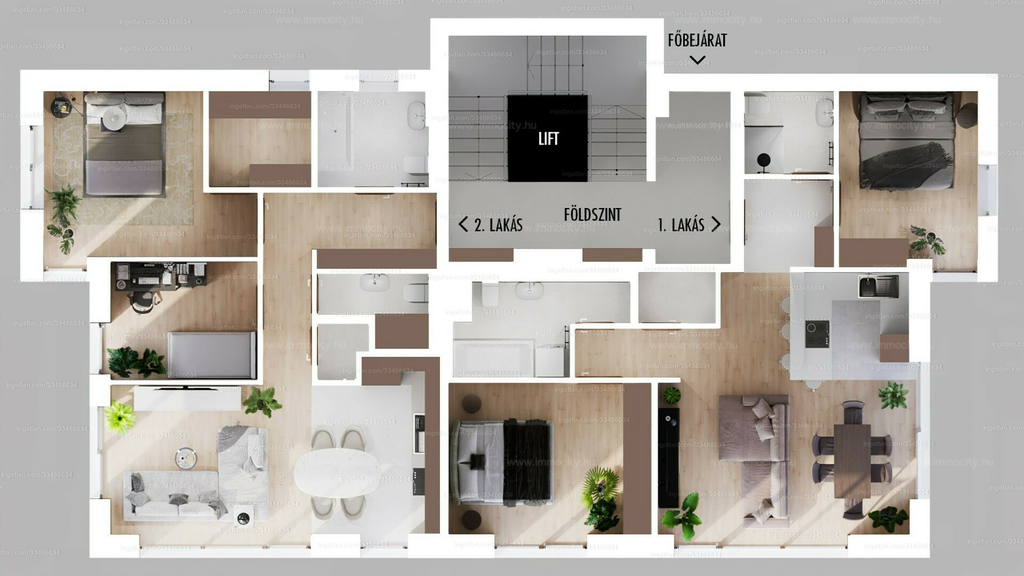 Fszt. kert felé néző lakás: 73 m2 + 30 terasz 270,396 M Ft.