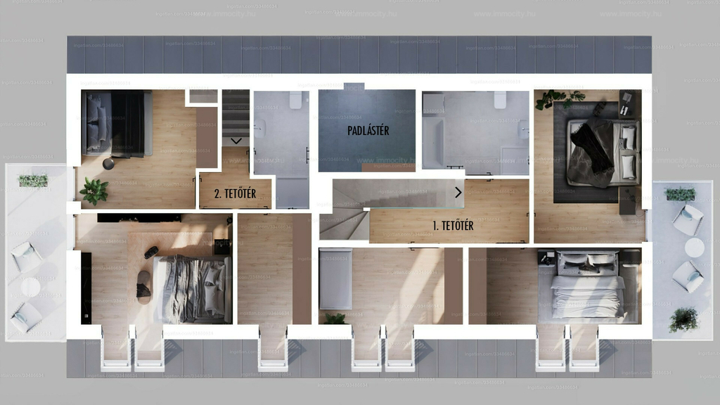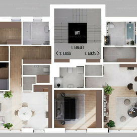 A legfelső 5 szobás lakások 2 szintesek, részben panorámával a városra.