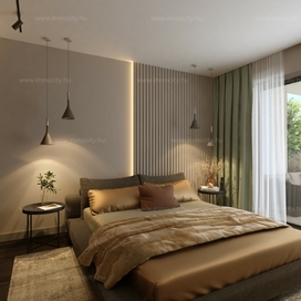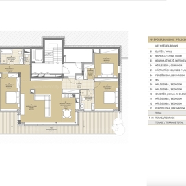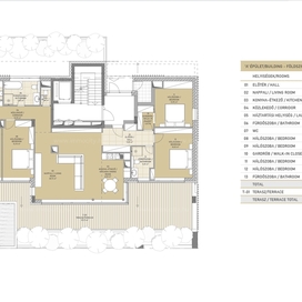 Minden lakáshoz, így a két hálószobás, kizárólag hasznos tereket magába foglaló 54 m2-es lakásokhoz is nagy méretű teraszok kapcsolódnak.