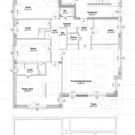 A földszinti 5 szobás lakás 144 m2 alapterületű, 25 m2-es terasszal és kizárólagos használatú kertrésszel rendelkezik.