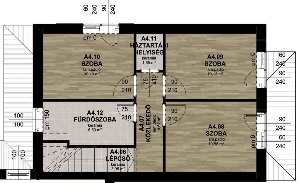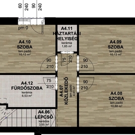 Négy db, egymástól jól szeparált, belső kétszintes lakóegység, terasszal, az emeleten erkéllyel, saját kertrésszel.