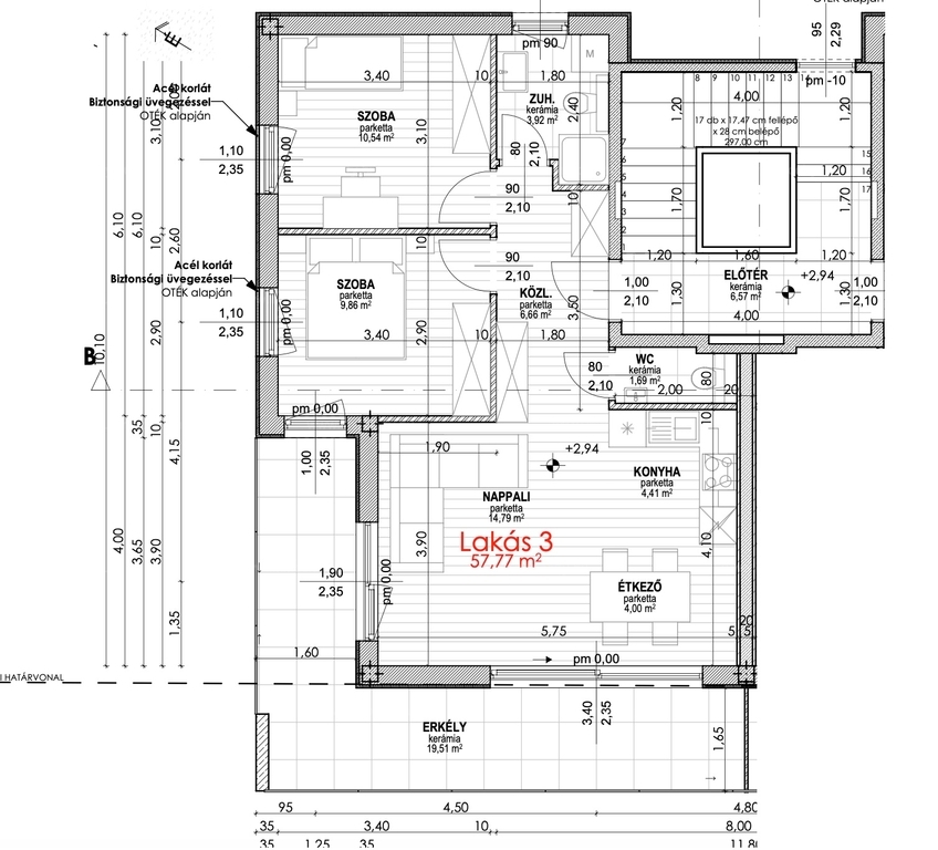 Az I. emeleti, nappali + 2 hálós lakás, 58 m2 alapterületű és 20 m2-es erkéllyel rendelkezik. A lakáshoz 2 parkoló megvásárolandó a teremgarázsban 10 M Ft/hely vételáron. A lakáshoz egy 4,5 m2 alapterületű tárolóhelyiség tartozik, amely a vételár részét képezi.
