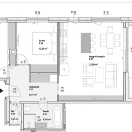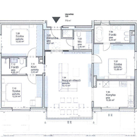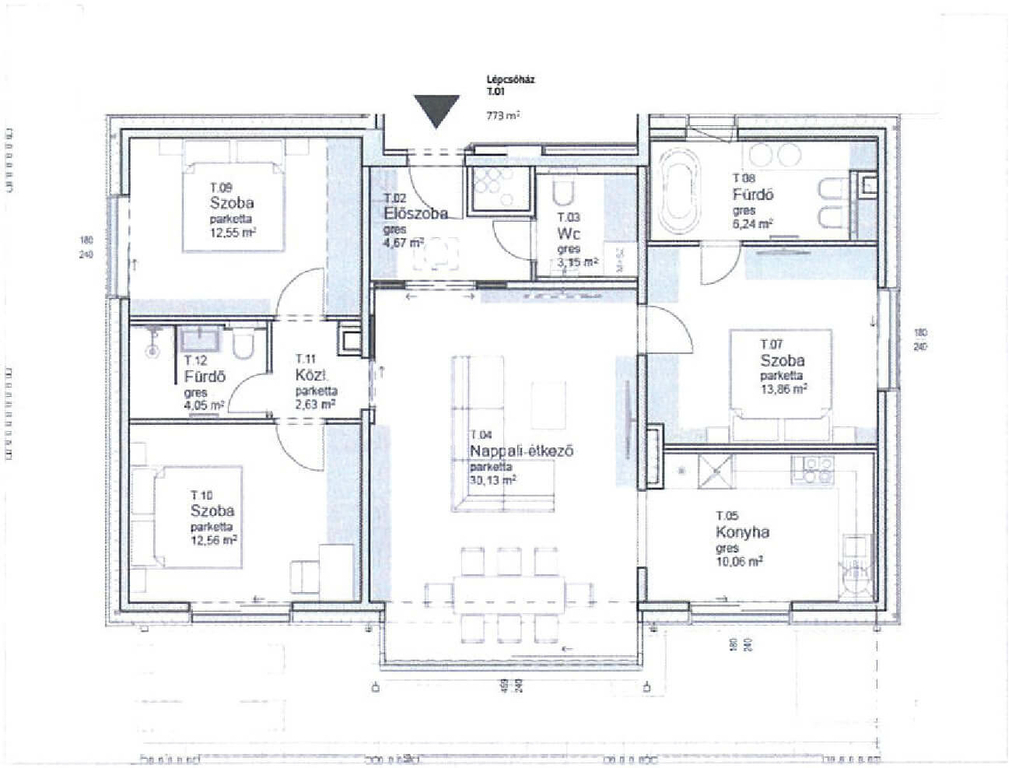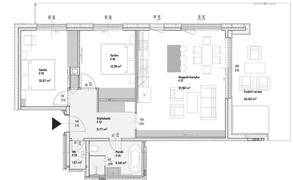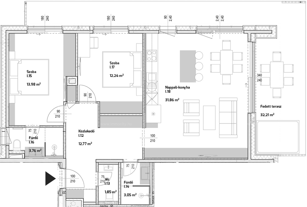 Fszt.1. 322 M Ft: 3 szobás lakás, 75,37 m2 a lakás + 32,60 m2 terasz