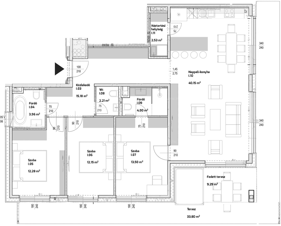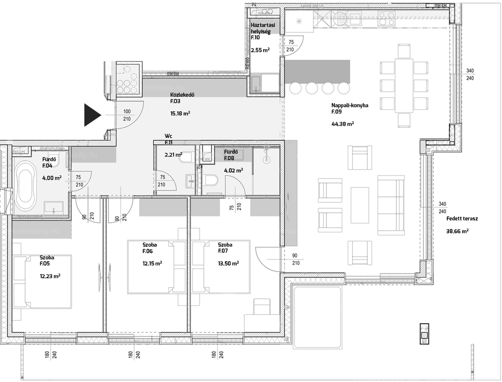 Fszt.2. 508 M Ft: 4 szobás lakás, 110,22 m2 a lakás + 55,10 m2 terasz