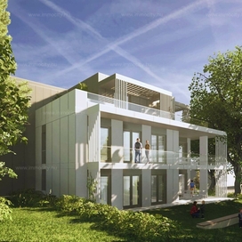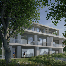 A formatervezett épület praktikus és funkcionálisan is átgondolt belső tereket rejt. A teraszok különös hangsúlyt kaptak, ami kapcsolatot teremt a lakás és a természet között.