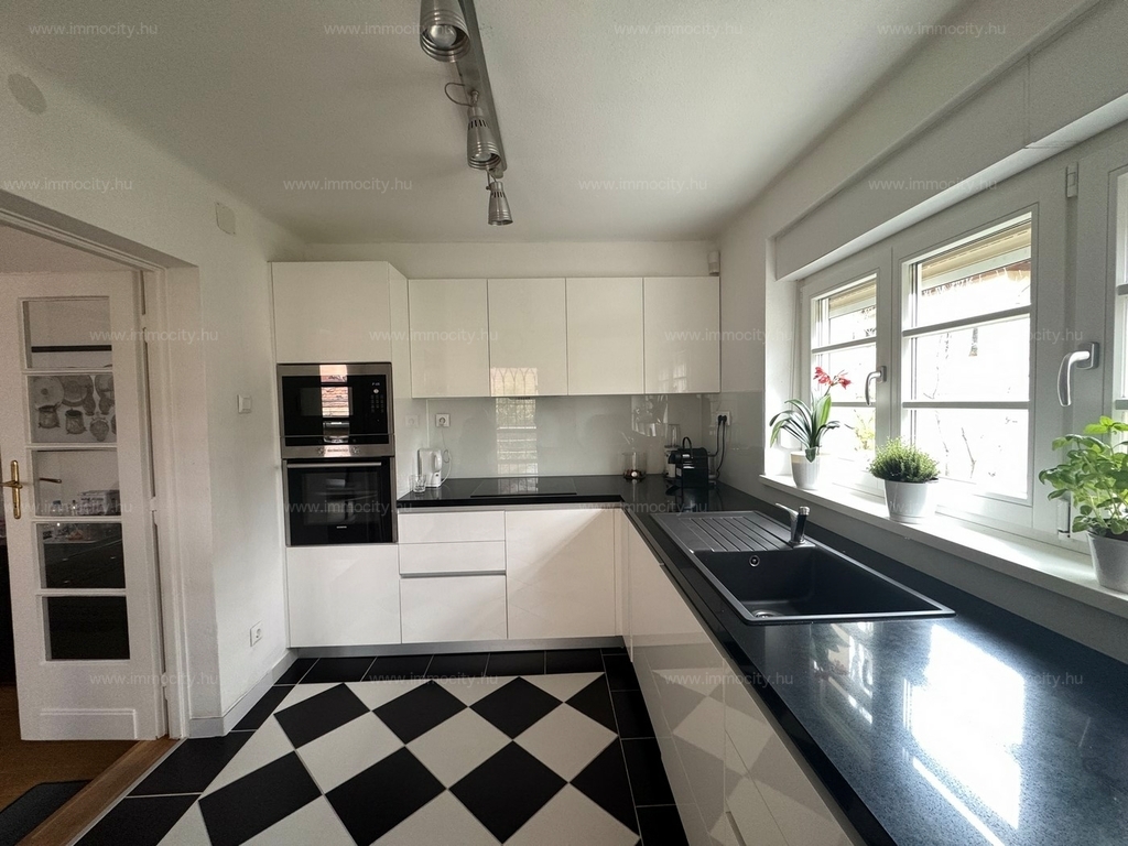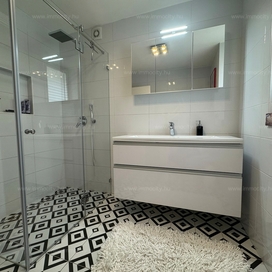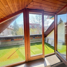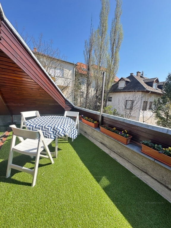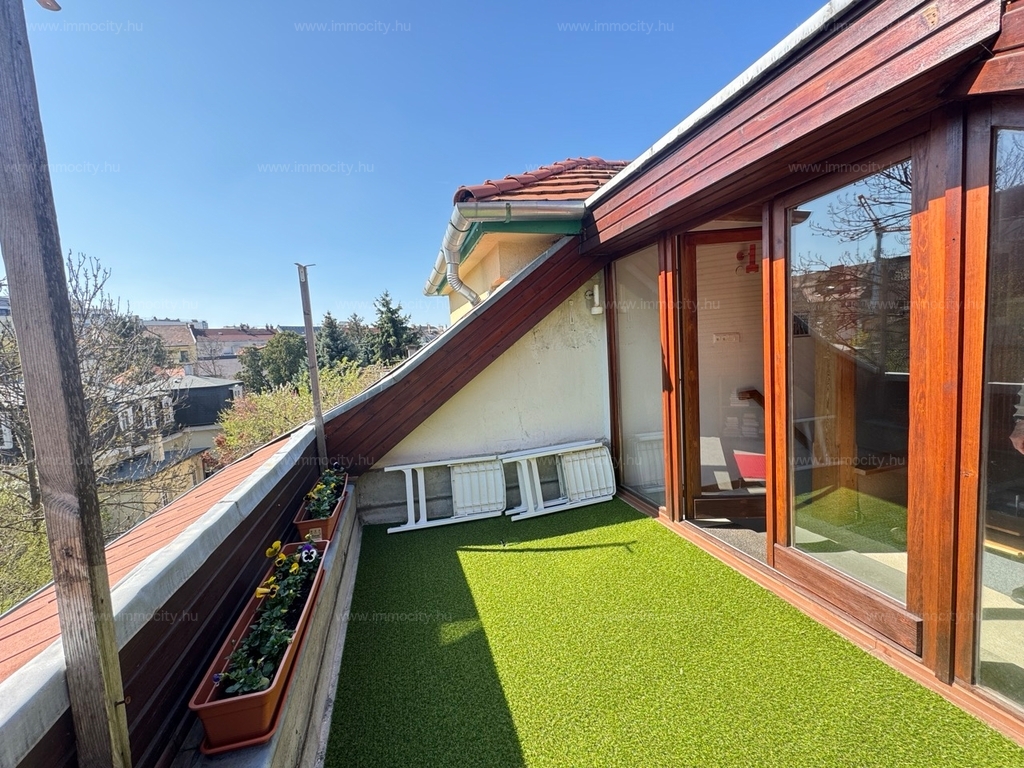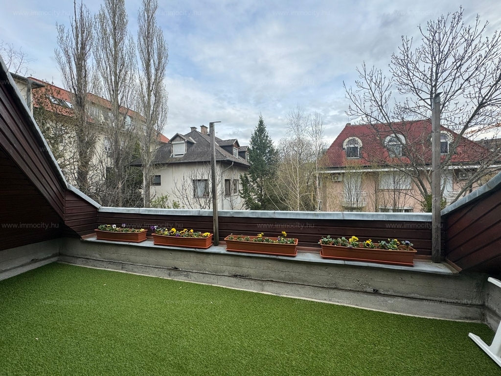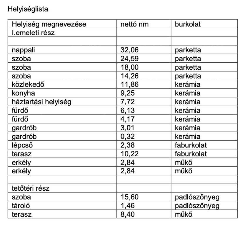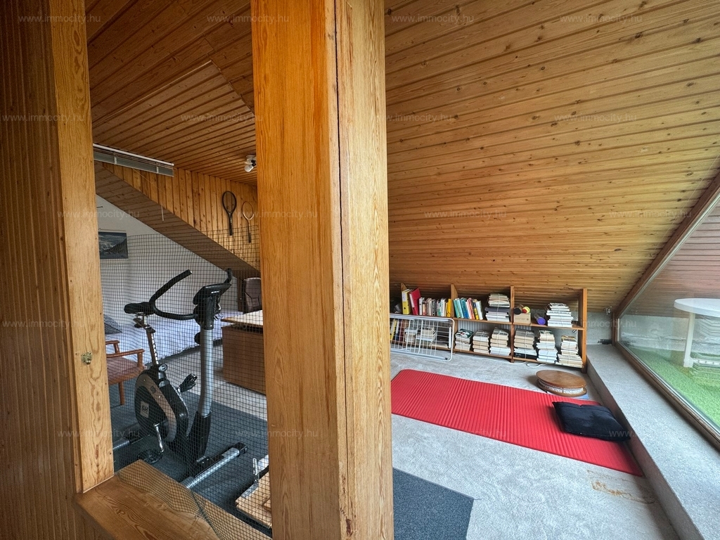 A szépen felújított alsó szint 134 m2, amit egy néhány belső lépcsővel megközelíthető, jelenleg nem használt teraszos tetőtéri szoba egészít ki. (a 25 m2 alapterületű helyiség 190 cm feletti területe 17 m2.) A hozzá kapcsolódó, több, mint 8 m2-es tetőterasszal együtt ez egy fiatal családtag álom-birodalma lehet, de a lakótértől elkülönített irodának is zseniális.
