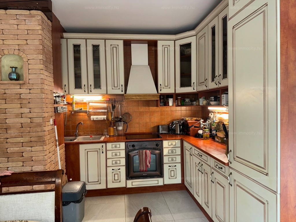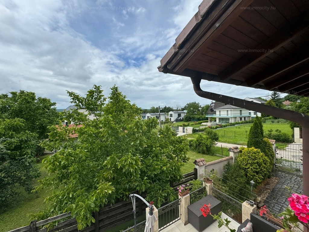 A földszinti tágas amerikai konyhás nappali és ebédlő terét egy további zárt télikert egészíti ki a ház teljes szélességében, amiből akár egy 3. hálószoba alakítható ki téglafalazattal. Ehhez egy 24 m2-es terasz kapcsolódik, és a parkosított, hangulatos kerttől csak néhány lépcső választja el.
