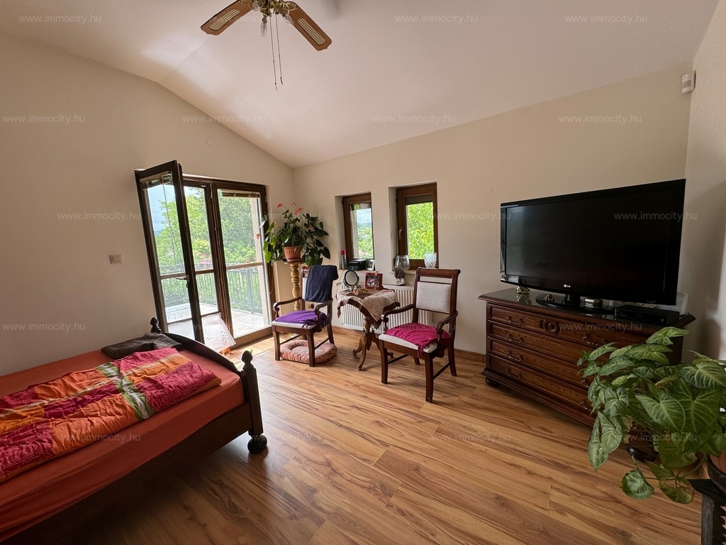 Két hálószoba, két fürdőszoba mellett a pince szinten is kialakításra került a szoba-fürdőszobás kis lakrész, mellette több, összesen kb. 80 m2 tároló helyiség található, ami számos egyéb funkcióra hasznosítható.