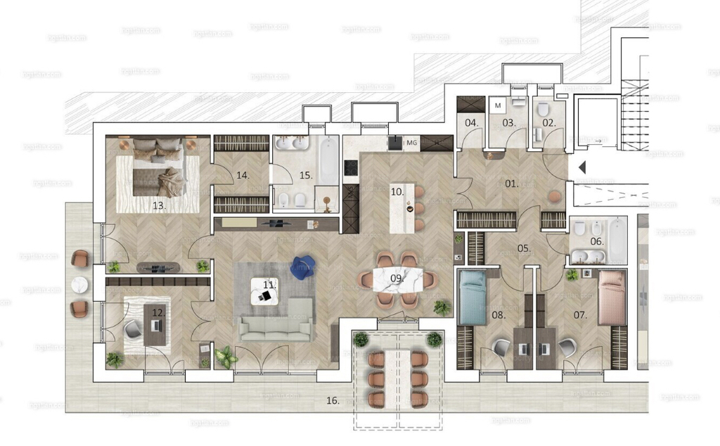 •Terasztetők és erkélyek egy szintben a lakás padlóvonalával.