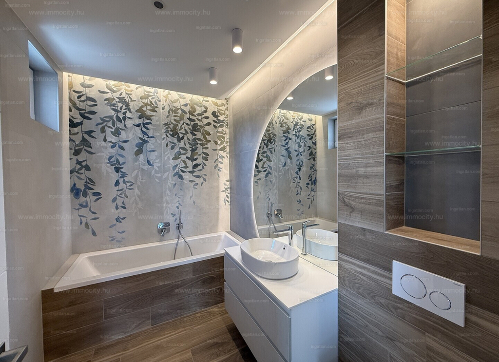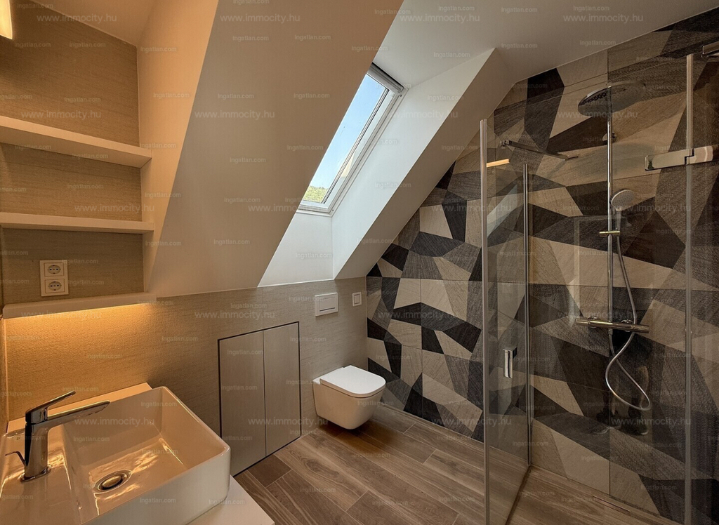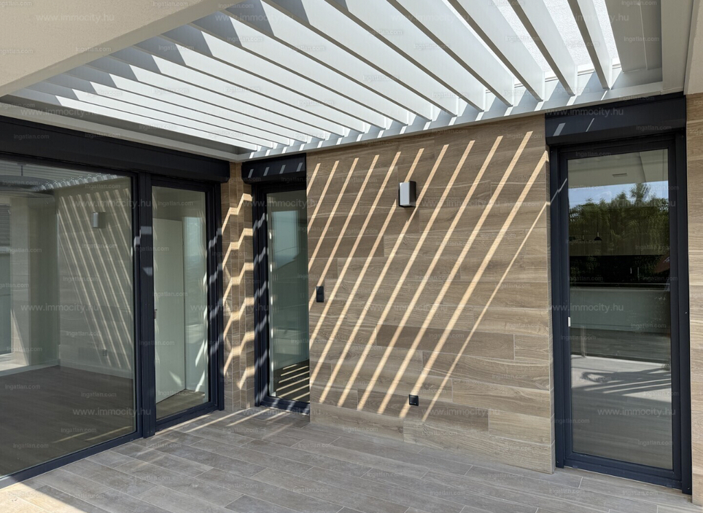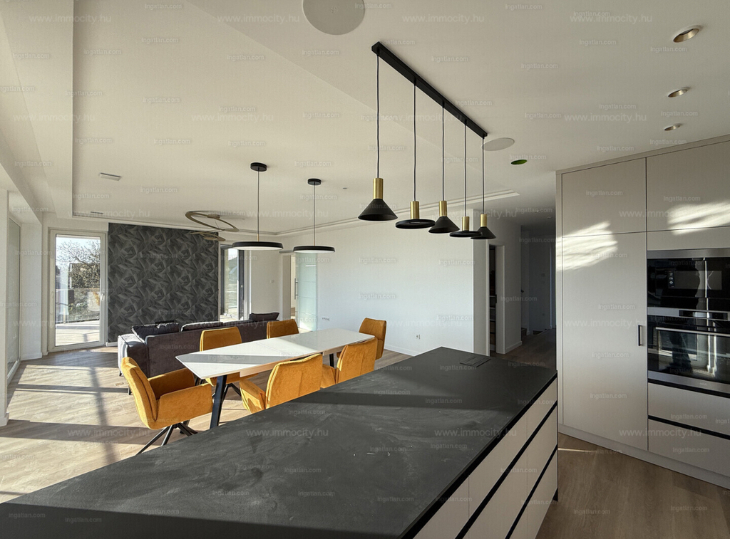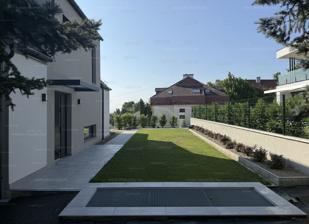 A vételárban a képeken látható beépített bútorok, konyhagépek, valamint a füvesített, robotfűnyíróval és öntözőrendszerrel telepített kert is benne foglaltatik.