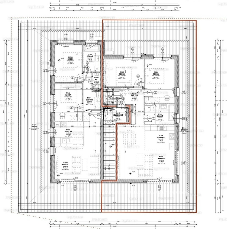 A házban elérhető még egy 64 m2-es penthouse lakás is 92 m2-es terasszal 145,9 M Ft vételáron.
