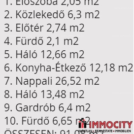 A földszinti 3 szobás lakás 91,08 m2 alapterületű 36,43 m2-es terasszal és egy 163 m2-es kizárólagos használatú kertrésszel rendelkezik.