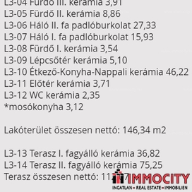A kétszintes panorámás penthouse lakás 4 szobás, 146,32 m2 alapterületű és összesen 112 m2 terasszal rendelkezik.