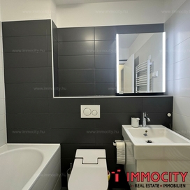 Az exkluzív, új bútorokkal berendezett lakásban a legkorszerűbb mennyezeti hűtés-fűtés és padlófűtés van kiépítve.