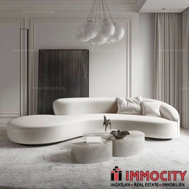 A 2 hálószobás igazi penthouse lakás nappalija előtt közel 100 m2-es terasz képez kapcsolatot a természettel.