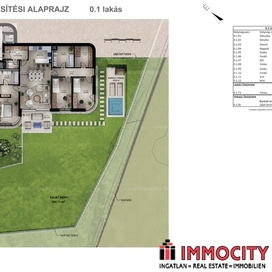 A 4 szobás lakás 120,65 m2 alapterületű, 12,39 m2-es terasszal és 264 m2-es kizárólagos használatú kertrésszel rendelkezik.