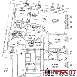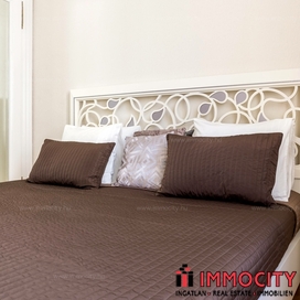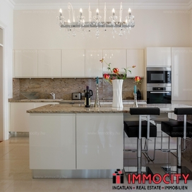 A négy hálószobához két kádas és két zuhanyzós fürdőszoba tartozik. A tágas előszobából gardróbszoba nyílik praktikus, beépített szerkényekkel. A konyha külön helyiségben helyezkedik el, egy külön álló tároló is tartozik hozzá.