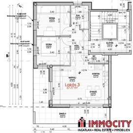Az I. emeleti, nappali + 2 hálós lakás, 58 m2 alapterületű és 20 m2-es erkéllyel rendelkezik. A lakáshoz 2 parkoló megvásárolandó a teremgarázsban 10 M Ft/hely vételáron. A lakáshoz egy 4,5 m2 alapterületű tárolóhelyiség tartozik, amely a vételár részét képezi.
